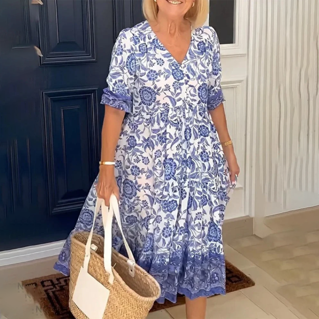 Edith - Elegantes Frühlingskleid mit V-Ausschnitt