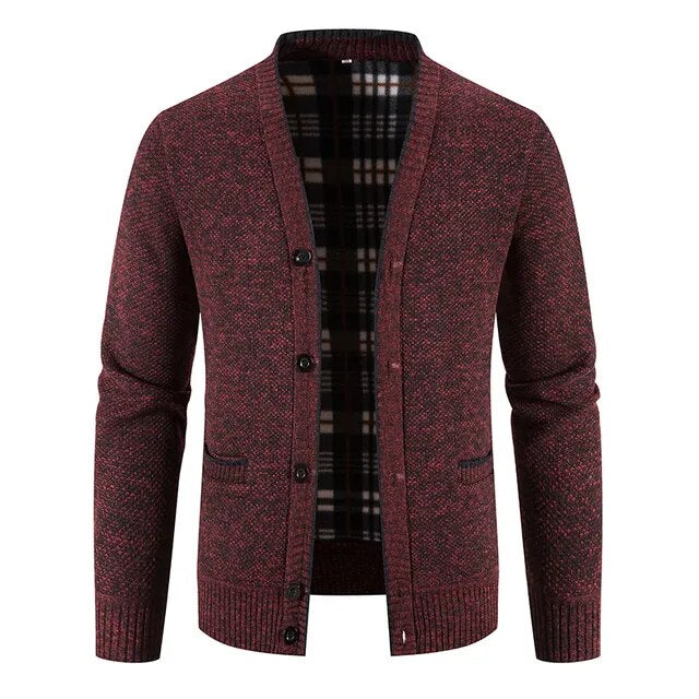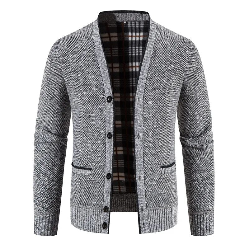 Erlebe die Wärme wie nie zuvor mit unserer Verdickten Strickjacke. Sie ist nicht nur warm; sie ist dein persönlicher Heizkörper für die kalten Monate. Mit ihren durchdachten Taschen und dem klassischen Design wirst du die Blicke auf dich ziehen, während du warm und komfortabel bleibst.