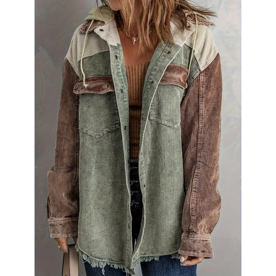 • Kapuze mit Details: Die praktische Kapuze schützt vor Wind und Kälte, während die trendigen Knopfdetails einen modernen Touch verleihen.