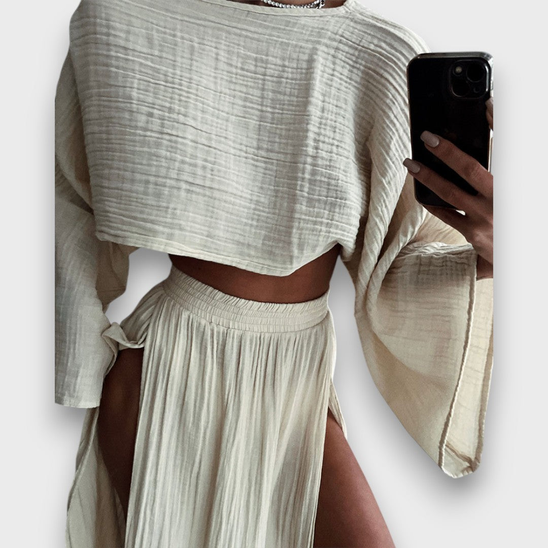 Ein Set, das nicht laut um Aufmerksamkeit bittet – sondern im Gedächtnis bleibt, weil es dich natürlich, feminin und vollkommen in deinem Element fühlen lässt.