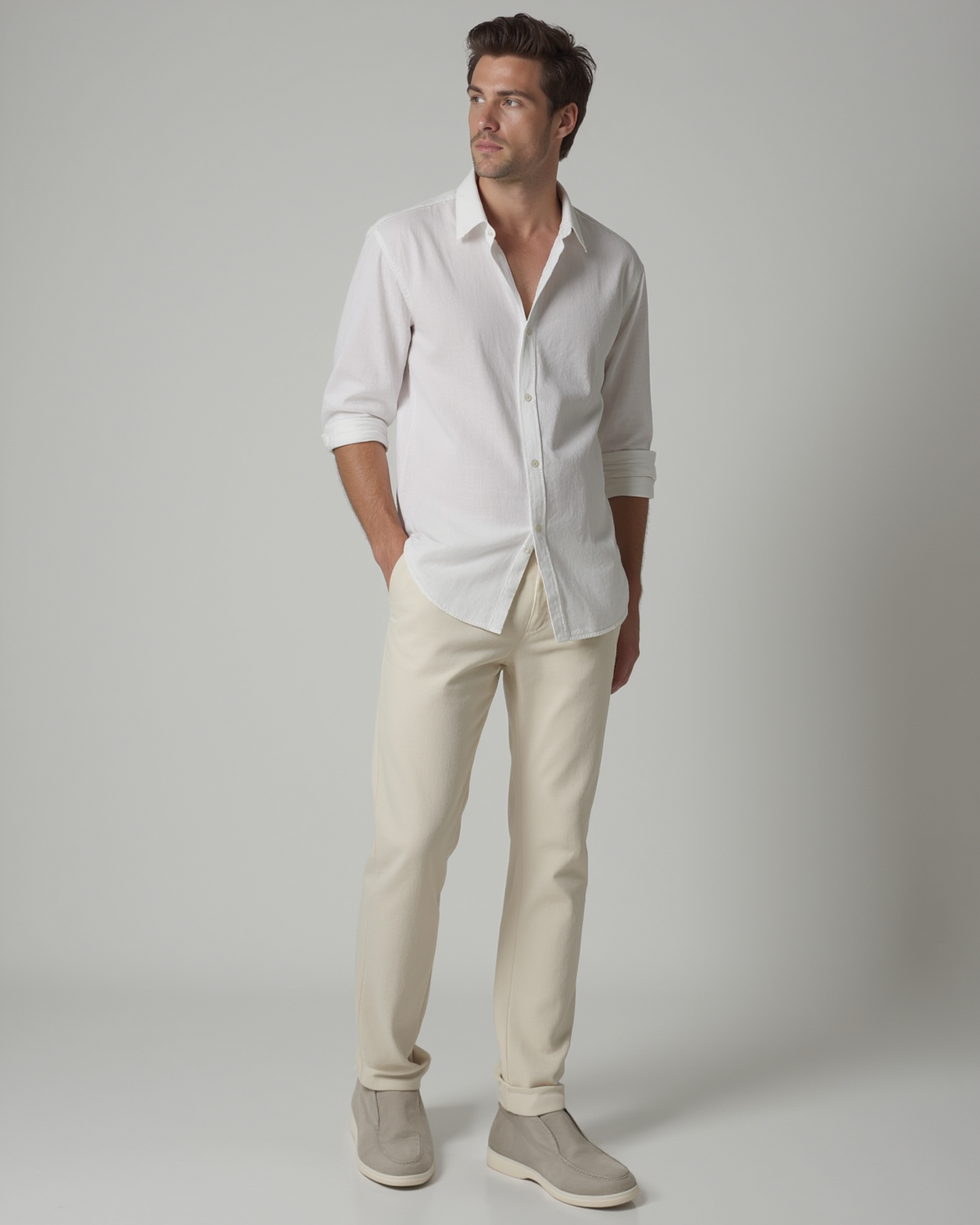 Unsere Produkte sind aus hochwertigen Materialien wie Baumwolle, Seide und Leinen gefertigt. Um die Qualität und Langlebigkeit dieser edlen Stoffe zu bewahren, empfehlen wir, sie bei maximal 30 Grad in der Waschmaschine zu waschen. So bleibt Ihre Kleidung lange schön und fühlt sich immer angenehm auf der Haut an.