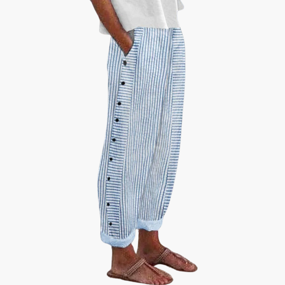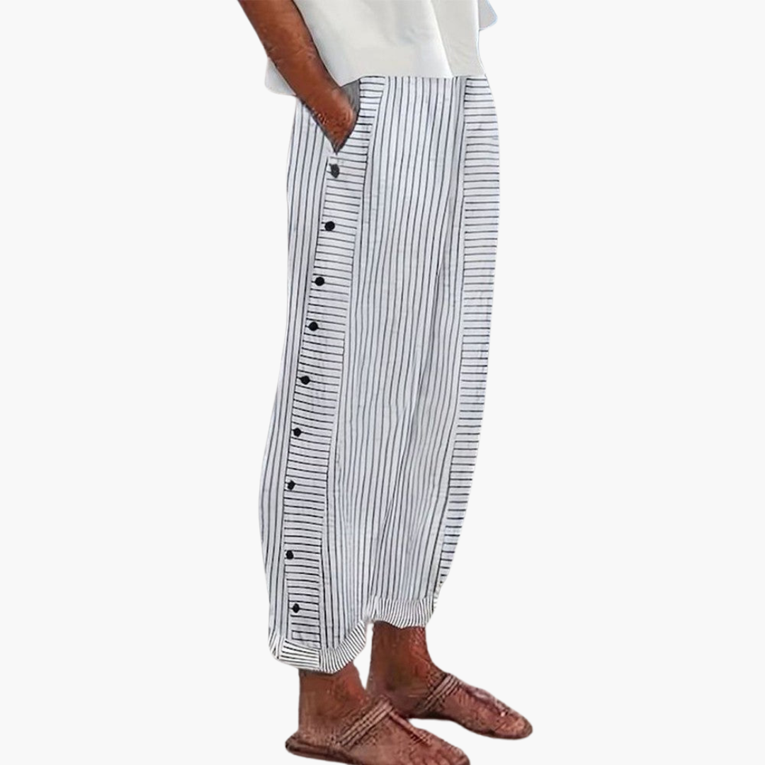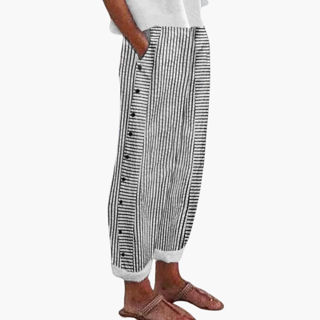 Verleihen Sie Ihrer Garderobe mit der Erika Softline Hose neuen Glanz, die für diejenigen entworfen wurde, die sowohl Komfort als auch Stil schätzen. Diese Hose kombiniert einen eleganten, atmungsaktiven Stoff mit der perfekten Passform und ist ideal für den Alltag oder entspannte Ausflüge. Die Seitentaschen bieten praktische Funktionalität, während die klassischen Streifen einen Hauch zeitloser Eleganz verleihen. Tragen Sie sie mühelos sowohl elegant als auch lässig für vielseitige Styling-Optionen.