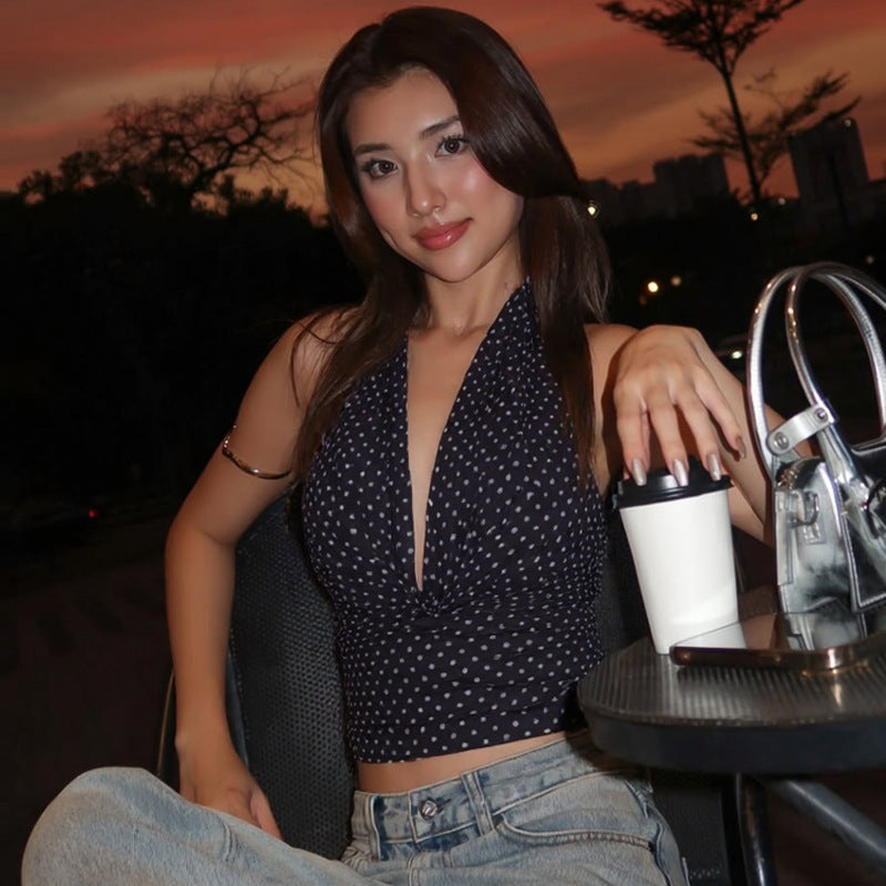 Dieses rückenfreie Top mit Punkten ist das perfekte Stück, um deinen Stil kühn und frisch zu enthüllen. Sein schmeichelhafter Schnitt schmiegt sich an die Formen an, während er die Haut atmen lässt, für einen verführerischen, aber bequemen Look. Einfach zu kombinieren mit einer hochtaillierten Jeans oder einem fließenden Rock, ist es ideal zum Ausgehen, Reisen oder um im Alltag für Aufsehen zu sorgen.