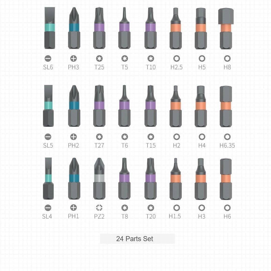 • Enthält Schraubendreheraufsätze, Minischlüssel, Maßband und mehr