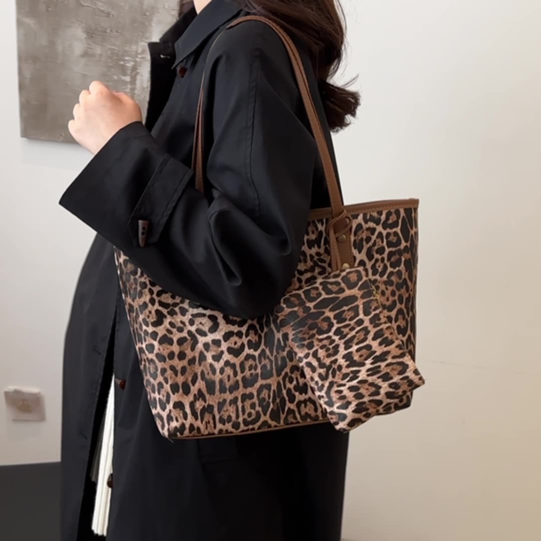Eine geräumige Tragetasche mit Animal-Print – ein trendiges Statement für selbstbewusste Frauen. Vielseitig einsetzbar und ideal für den Alltag oder Wochenendausflüge.