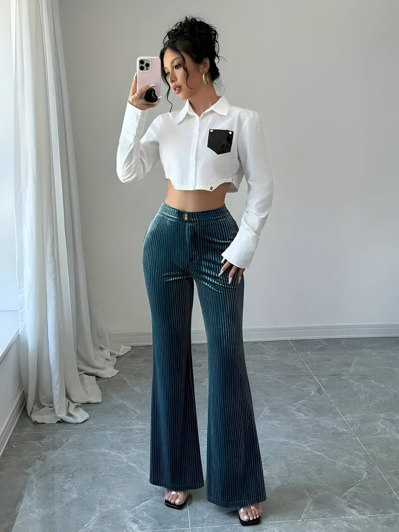 Stell dir vor, du schlüpfst in eine Hose, die so bequem ist, wie sie aussieht. Diese Schlaghose ist die perfekte Mischung aus leger und schick und wurde entwickelt, um dir eine schmeichelhafte Passform zu geben, während du dich frei bewegen kannst. Egal, ob du einen sonnigen Frühlingstag oder einen warmen Sommernachmittag genießt, diese Hose hält dich cool und stilvoll. Die einfache, einfarbige Farbe macht sie vielseitig kombinierbar, während die lockere Passform deinem Look eine entspannte, mühelose Note verleiht.