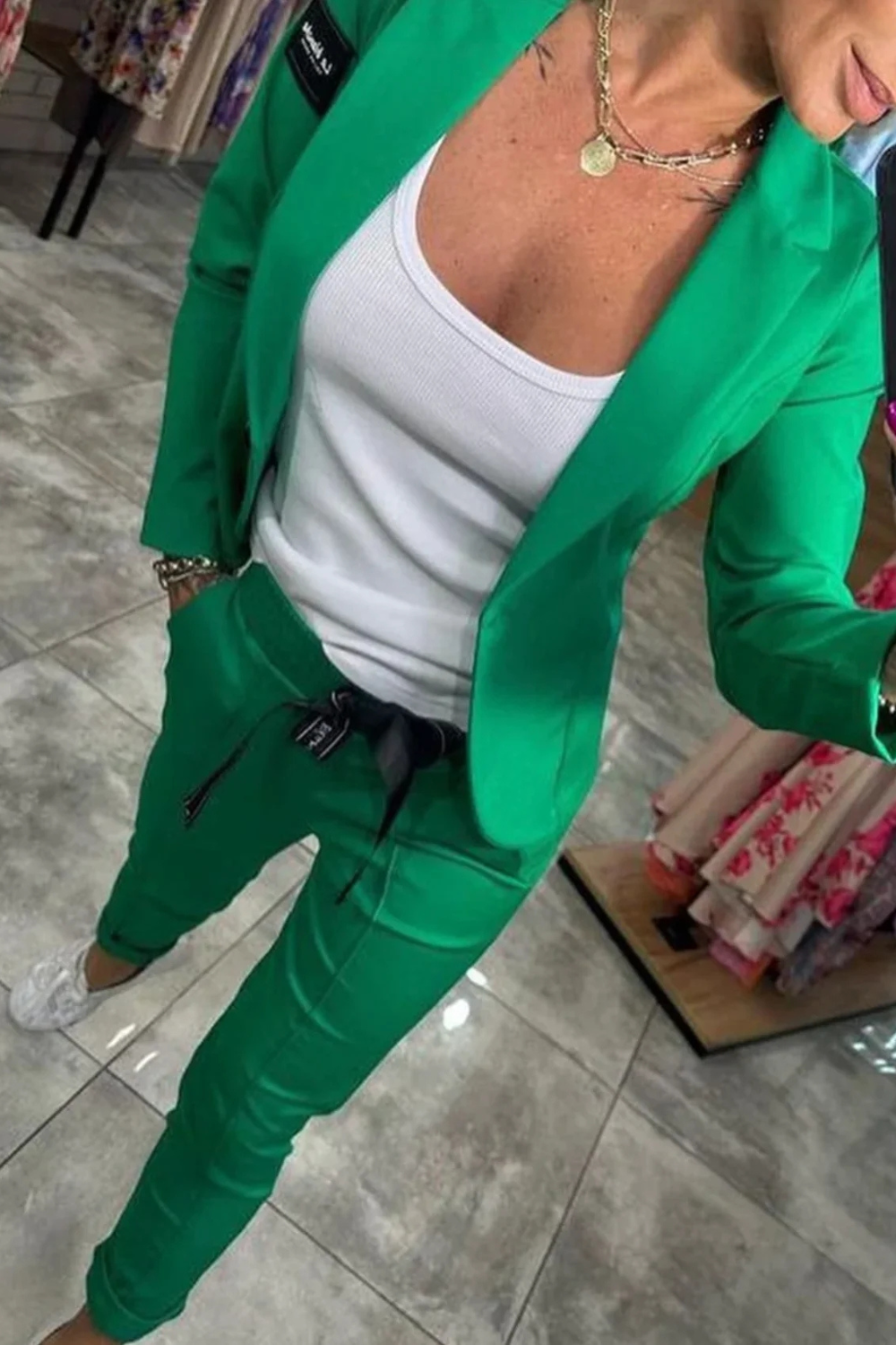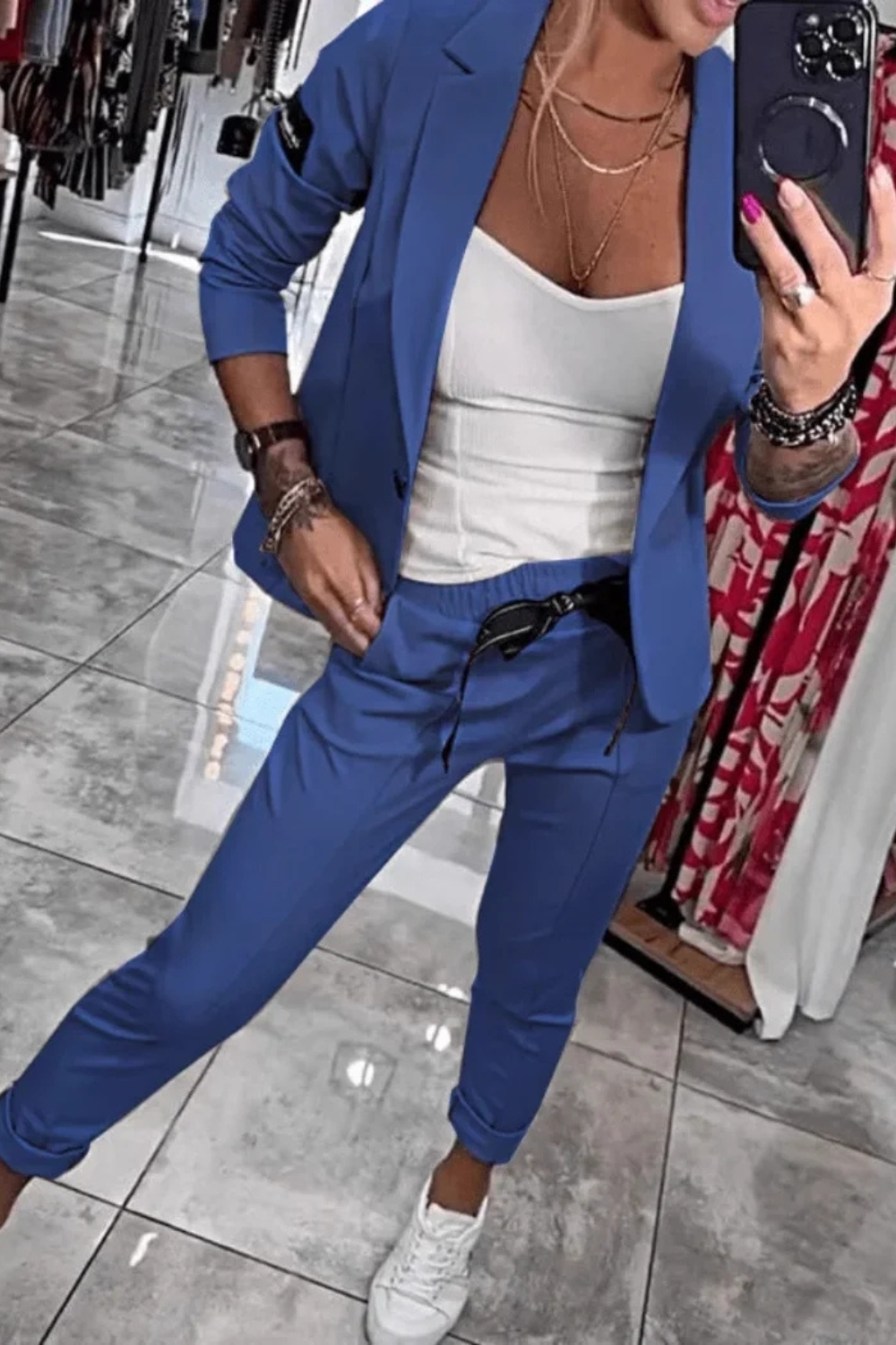 Unser beliebtes Relax Chic Set ist die perfekte Wahl für alle, die Komfort und Stil in ihrem Alltagslook suchen. Die leichte Jacke und die Hose mit verstellbarer Taille bieten einen entspannten und dennoch eleganten Stil, ideal für legere oder halbformelle Anlässe.