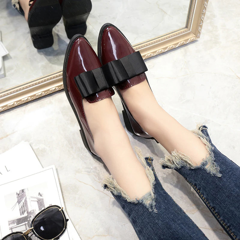 Heidi's Elegant Glossy Bow Moccasins
