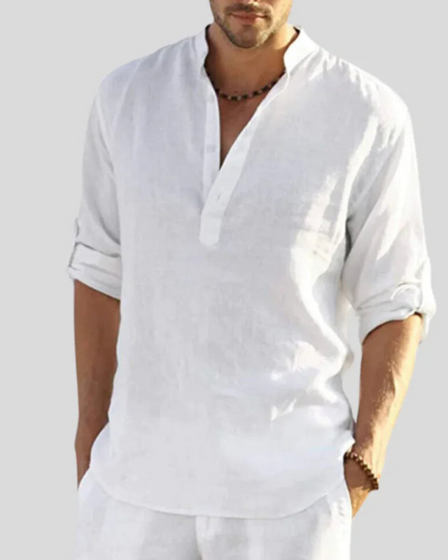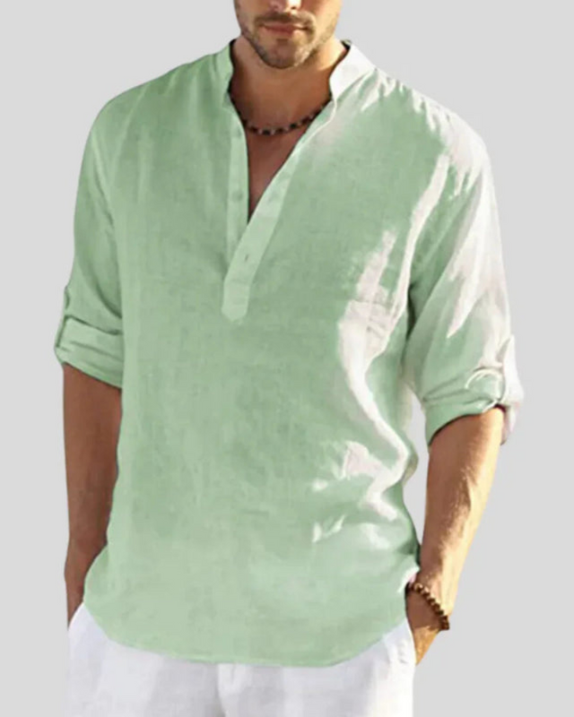 Herren Langarmhemd mit Stehkragen | Lockeres Freizeithemd mit Knöpfen