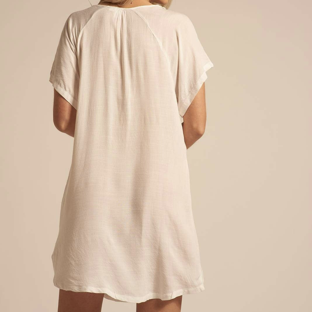 Das Kassandra Strandkleid verleiht deinem Sommerlook eine stilvolle und feminine Note. Die feine Spitzenverzierung sorgt für eine elegante Optik, während der lockere Schnitt und das leichte Material ein angenehmes Tragegefühl garantieren – selbst an heißen Tagen. Ob am Strand, im Urlaub oder bei einem sommerlichen Stadtbummel – dieses Kleid ist die perfekte Mischung aus Komfort und Stil. Kombiniert mit Sandalen oder Espadrilles entsteht im Handumdrehen ein luftiger, eleganter Look.
