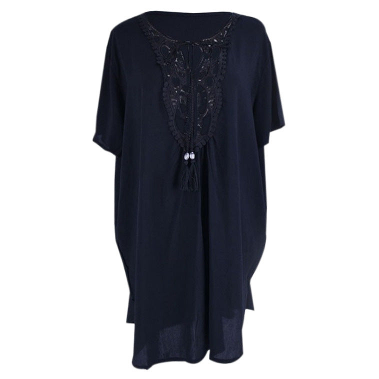 Ksenia- Damen Strandkleid mit eleganter Spitzenverzierung