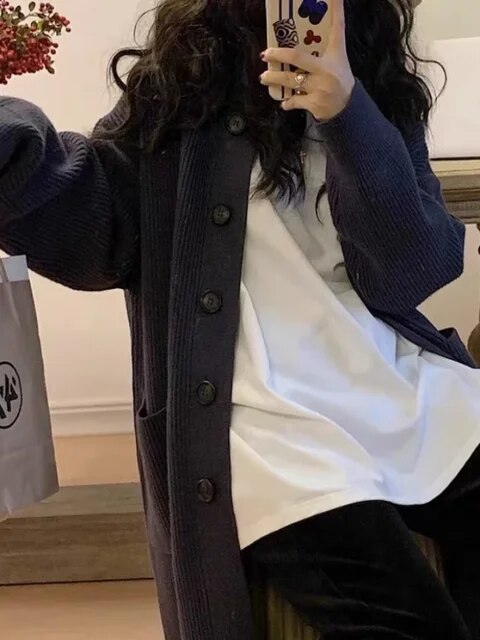 Tauche ein in die Welt des mühelosen Stils mit unserem neuen Strick-Cardigan. Das Inbegriff von lässiger Eleganz, dieser übergroße Cardigan ist deine erste Wahl für entspannte, dennoch trendige Momente. Hier dreht sich alles um den "faulen Wind"-Stil.