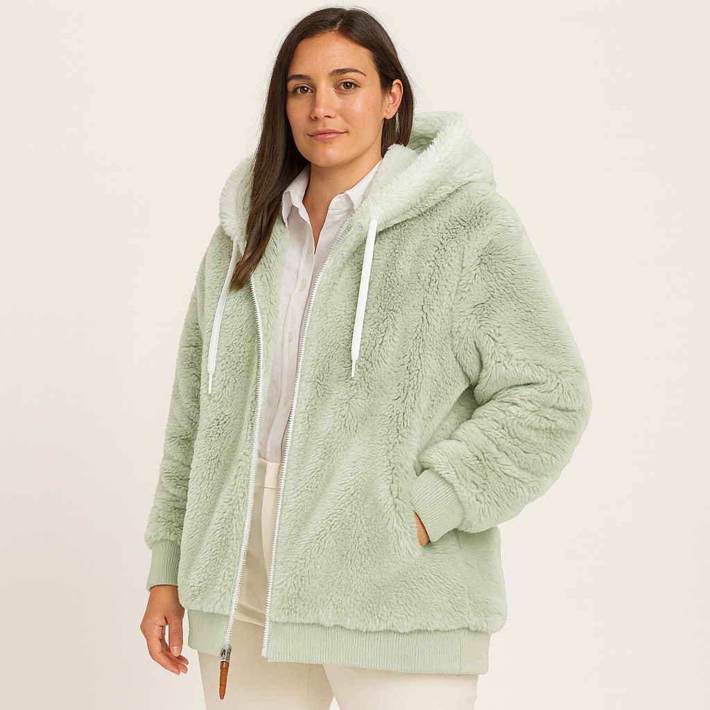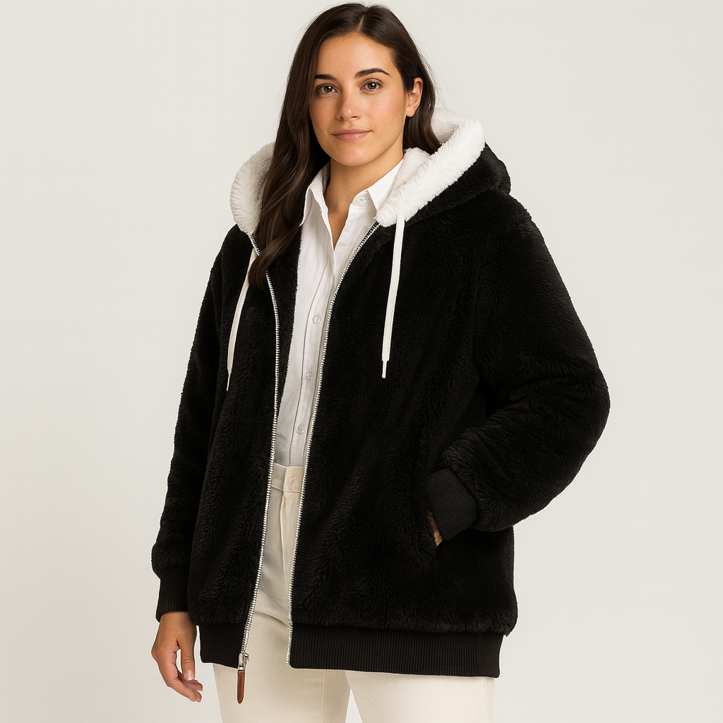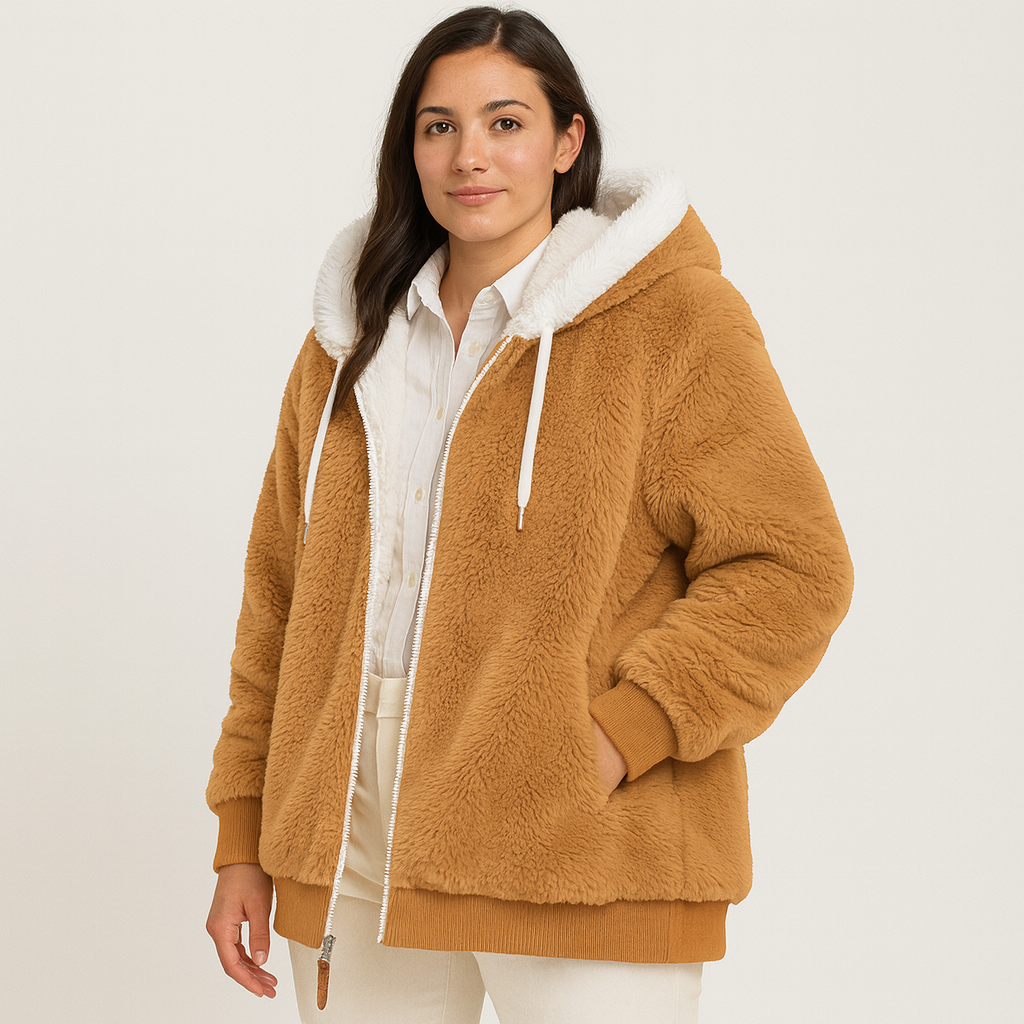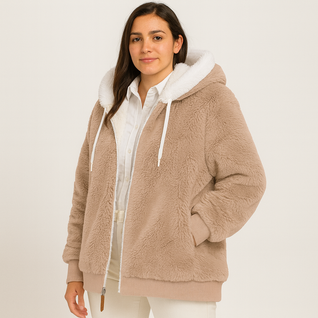 Leila | Lässiger Mantel mit Reißverschluss und Kapuze aus Kunstpelz