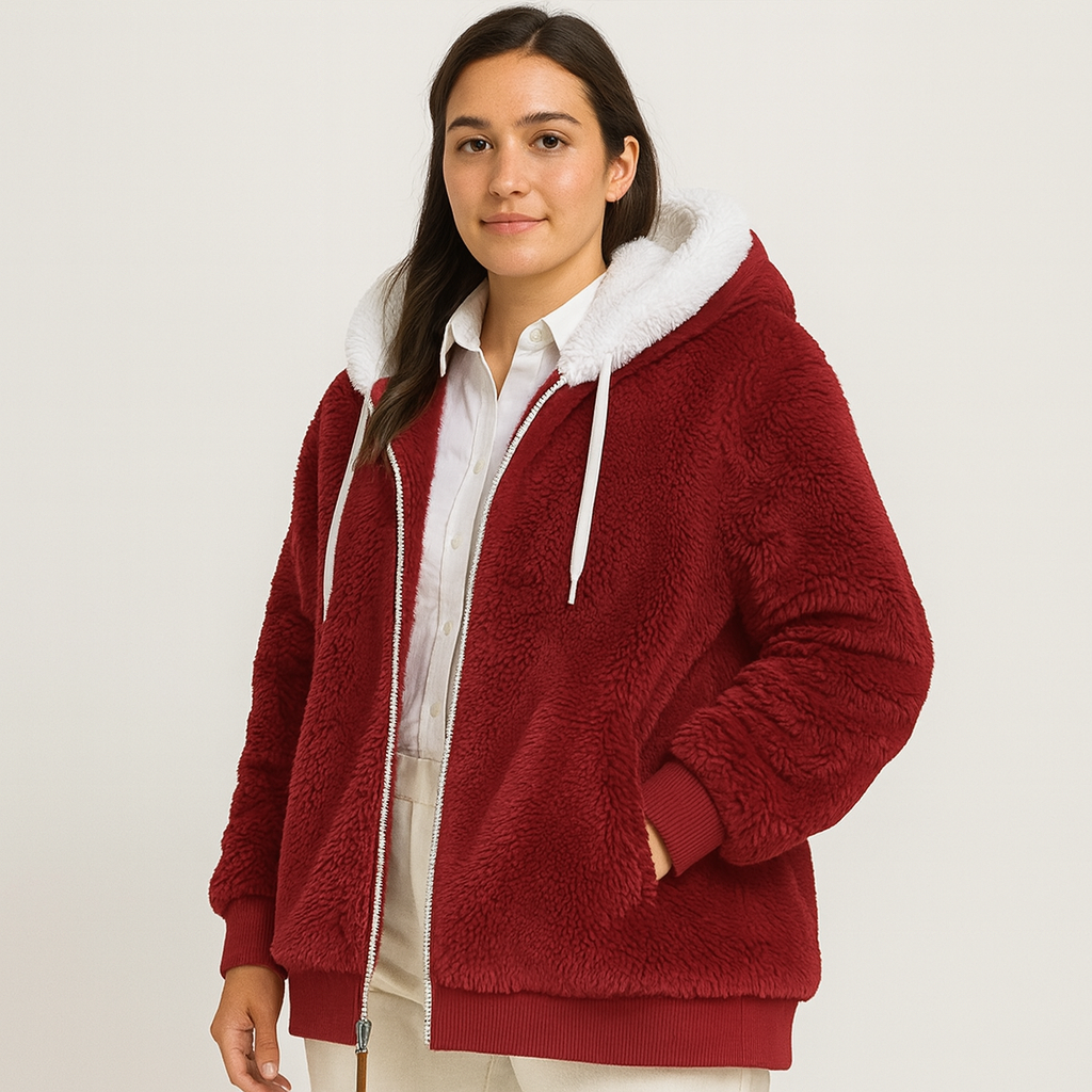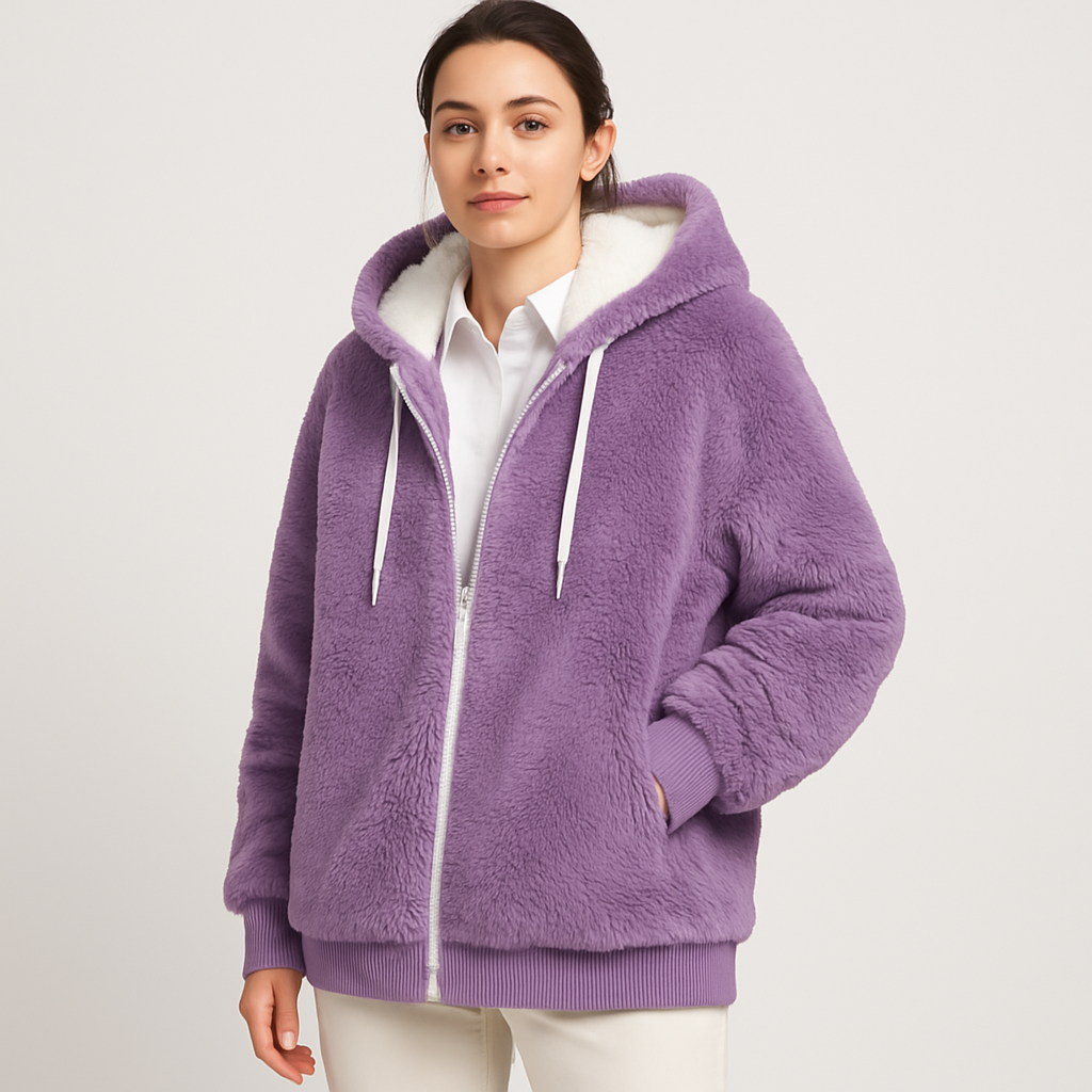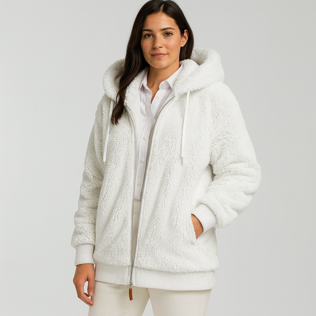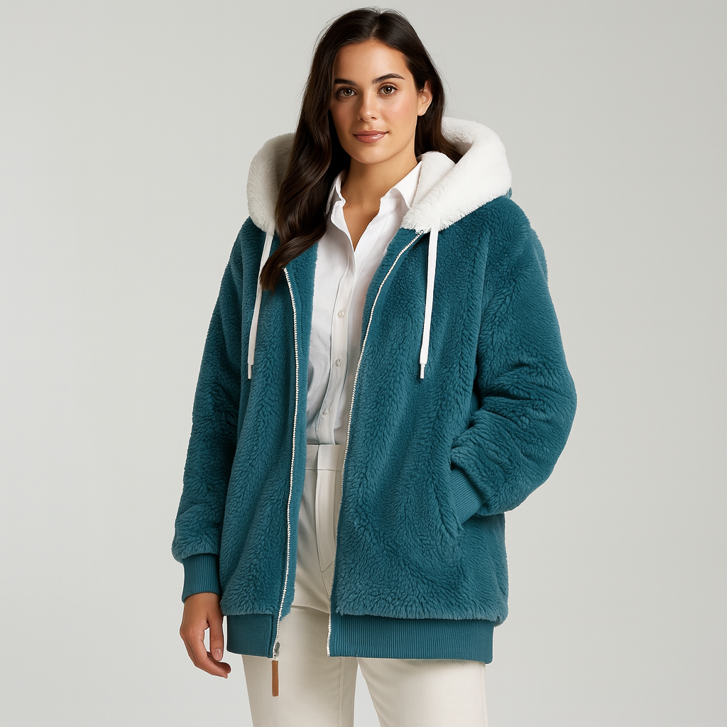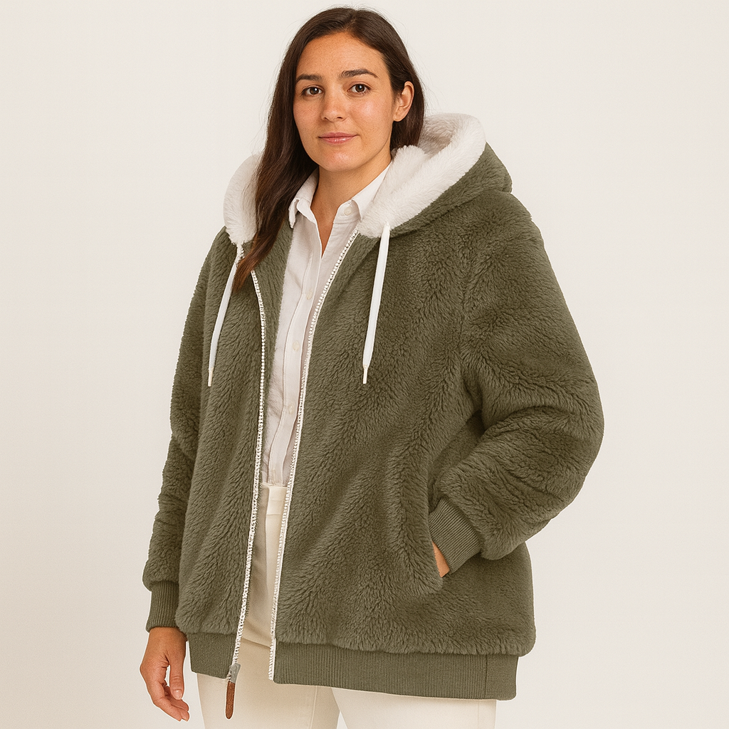 Leila | Lässiger Mantel mit Reißverschluss und Kapuze aus Kunstpelz