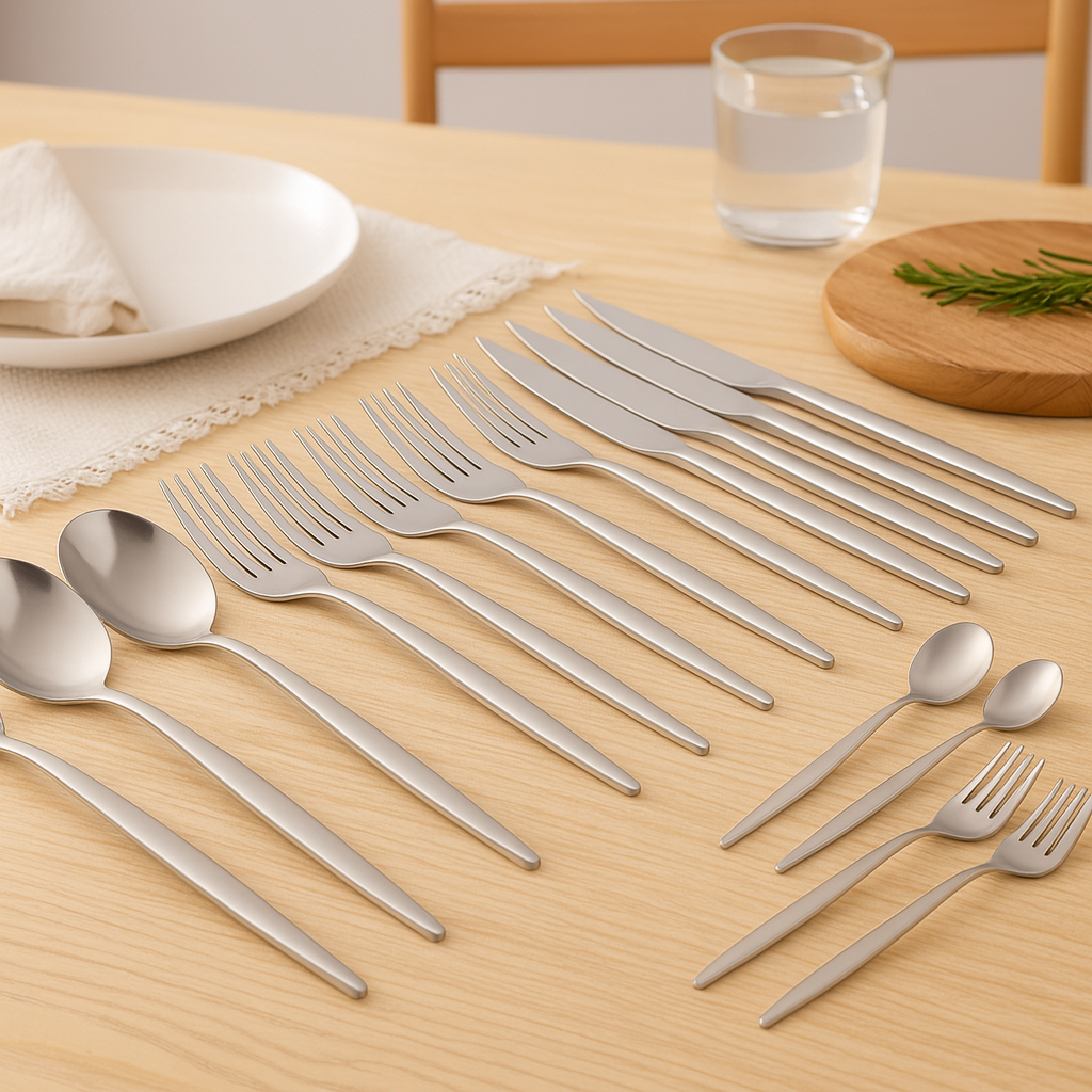 Vollständiges Set: Enthält 30 Teile mit Messern, Gabeln, Löffeln und Dessertlöffeln.