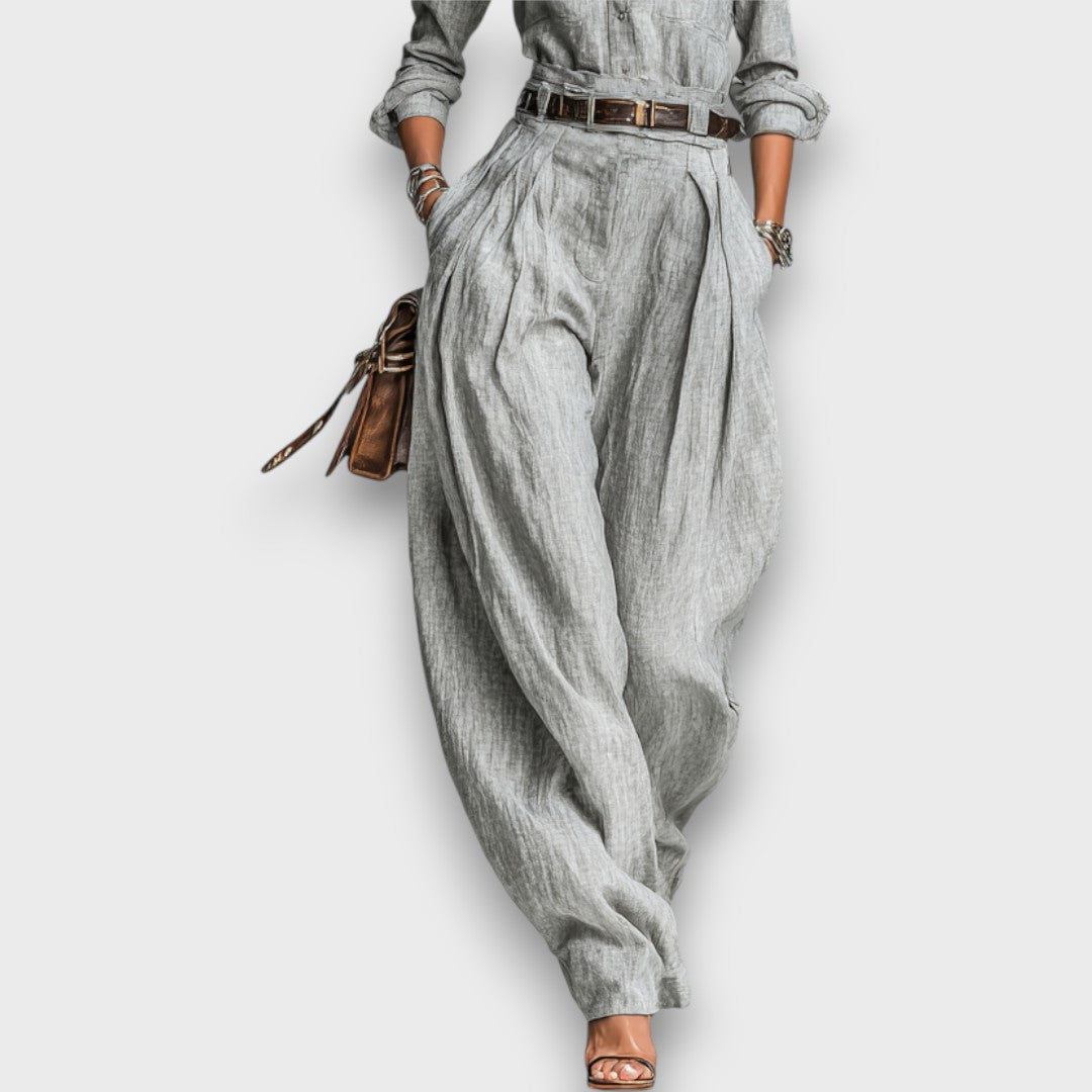Malvine – Zweiteiliges Set aus Baumwoll-Leinen mit Gürtel