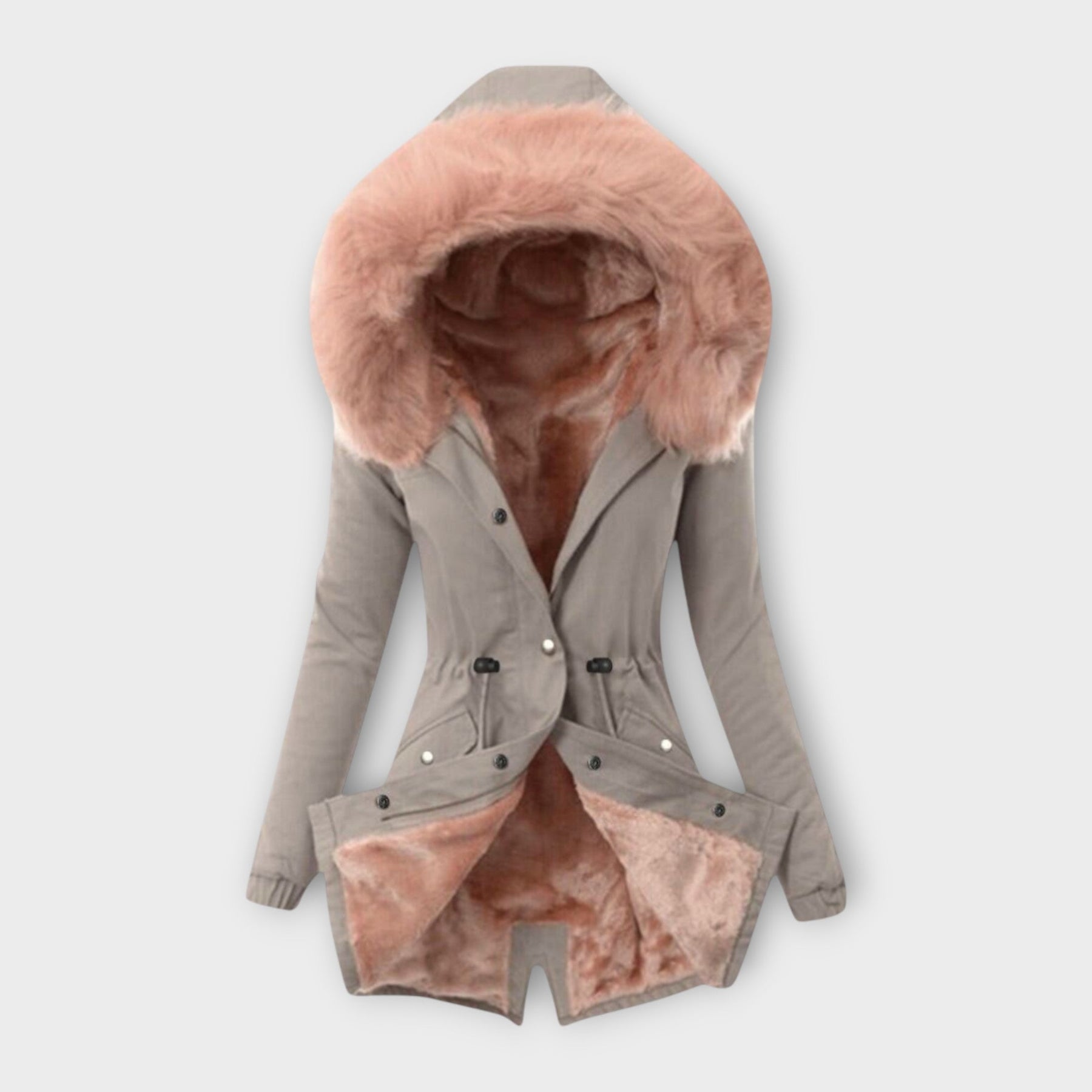 Maurelle verbindet robuste Funktionalität mit kuscheliger Wärme. Die markante Kapuze mit Fellbesatz verleiht dem Design eine luxuriöse Note, während der taillierte Schnitt für eine feminine Silhouette sorgt. Eine Jacke, die Stärke und Geborgenheit gleichermaßen ausstrahlt.
