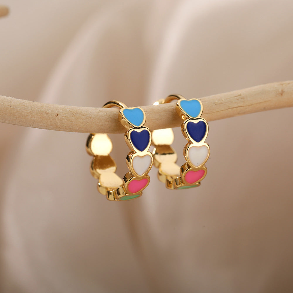 Minimalistische Mehrfarbige Herzen in Gold-Ohrringen