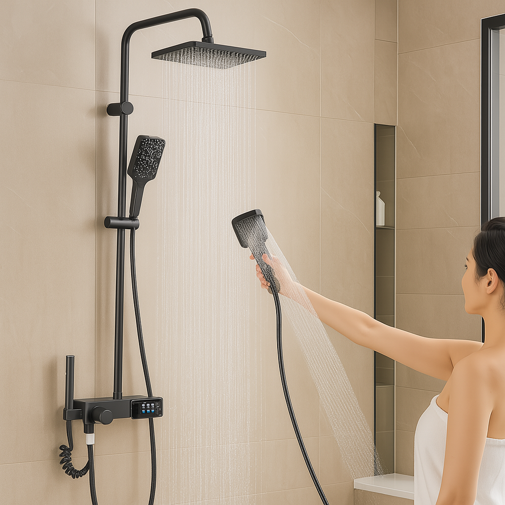 Modernes graues Duschset – Regenduschkopf mit Messingsteuerung für Badewannen- und Duschkombination