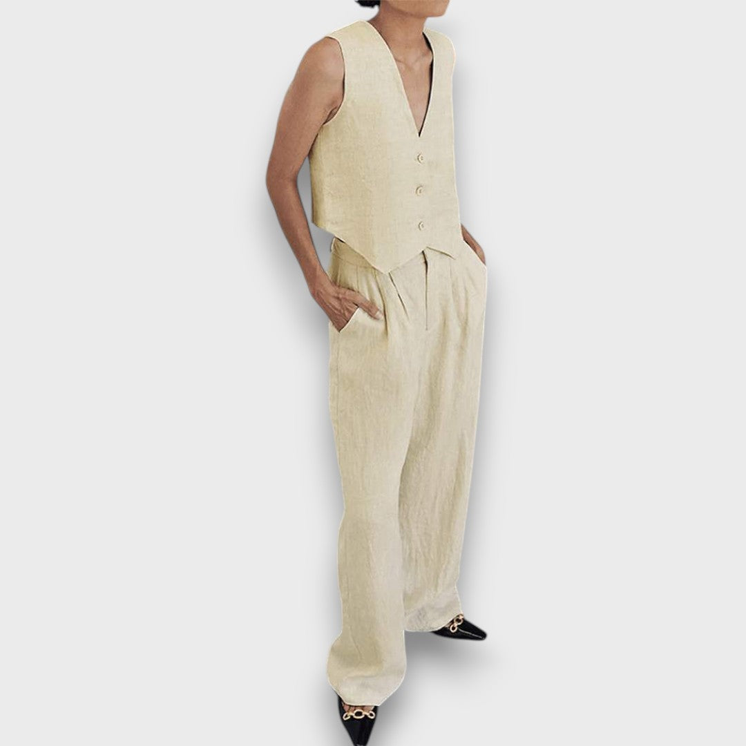 Solenne – Leinen-Set mit ärmelloser Weste