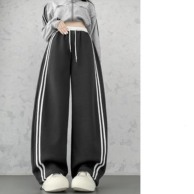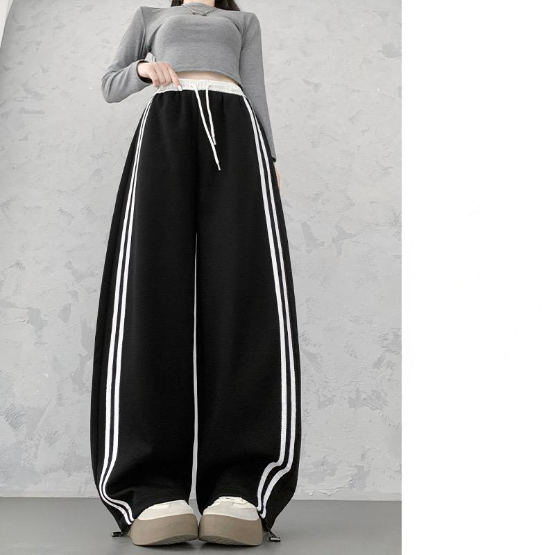 Diese weit geschnittene jogginghose kombiniert sportlichen stil mit maximalem tragekomfort. das weiche, atmungsaktive material und der elastische bund mit kordelzug sorgen für eine perfekte passform, während die seitlichen kontraststreifen für einen modernen, verlängerten look sorgen. ideal für entspannte tage, workouts oder streetstyle-outfits.