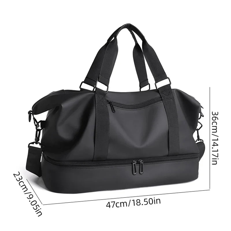 Diese vielseitige Sporttasche ist ideal für Yoga, Fitness und Training. Sie bietet nicht nur ausreichend Platz für Ihre Sportausrüstung, sondern überzeugt auch durch ihr wasserdichtes Material, das Ihre Sachen bei jedem Wetter schützt. Mit einem speziellen Schuhfach ausgestattet, ist sie perfekt für den Einsatz im Fitnessstudio oder für Wochenendausflüge.